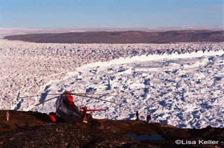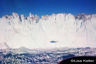 The scenery and the ride itself in the helicopter are an experience I'm not sure I can justly describe. Remember the scene in the Star Wars movie where the fighter plane flew in between the snow-capped mountains? Well, this helicopter ride was 10 times more exciting. Our pilots flew the helicopter in between the icebergs, dipping down really low. This ride out to the glacier was just as exciting as the view. The helicopter then landed on a small rocky mountaintop in the middle of nowhere. We were in the center of the ice field surrounded by 360 degrees of ice. Totally awesome!!!